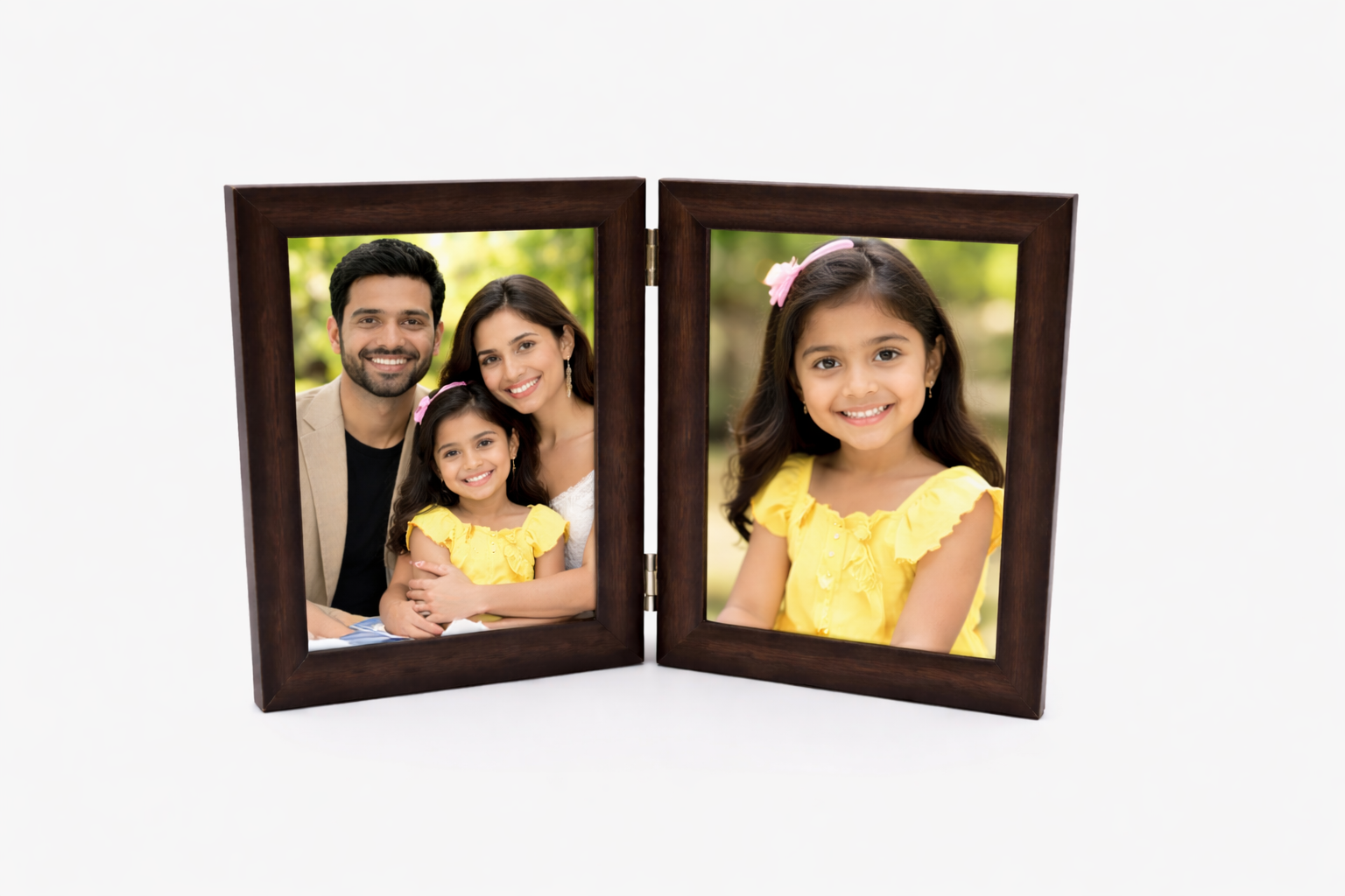 - Single-fold frame designed to beautifully display 2 photos of 4 × 6 inches.