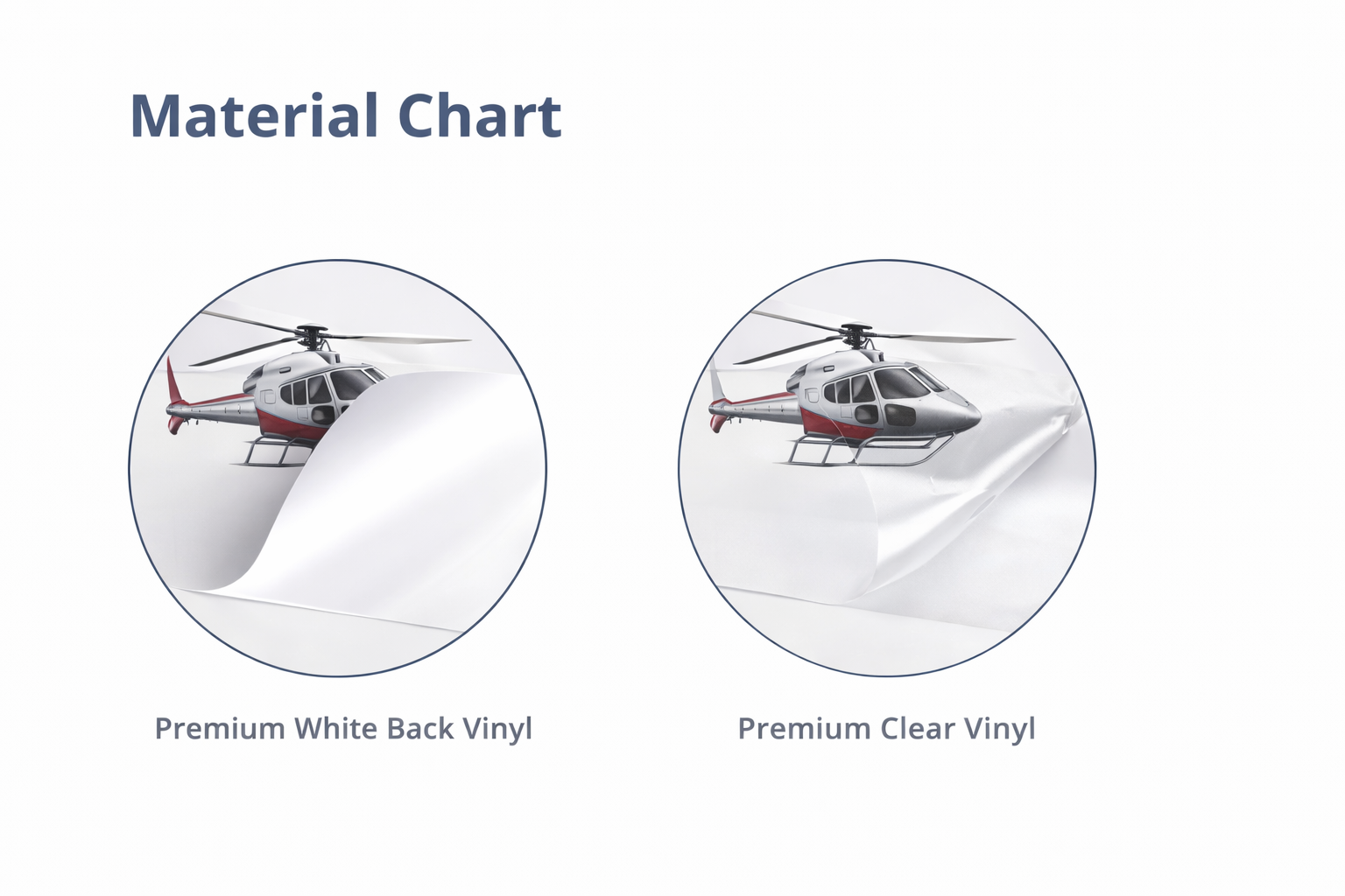 | Print Media | Premium White Back Vinyl Premium Clear Vinyl Premium Grey Back Vinyl Frosted Vinyl |