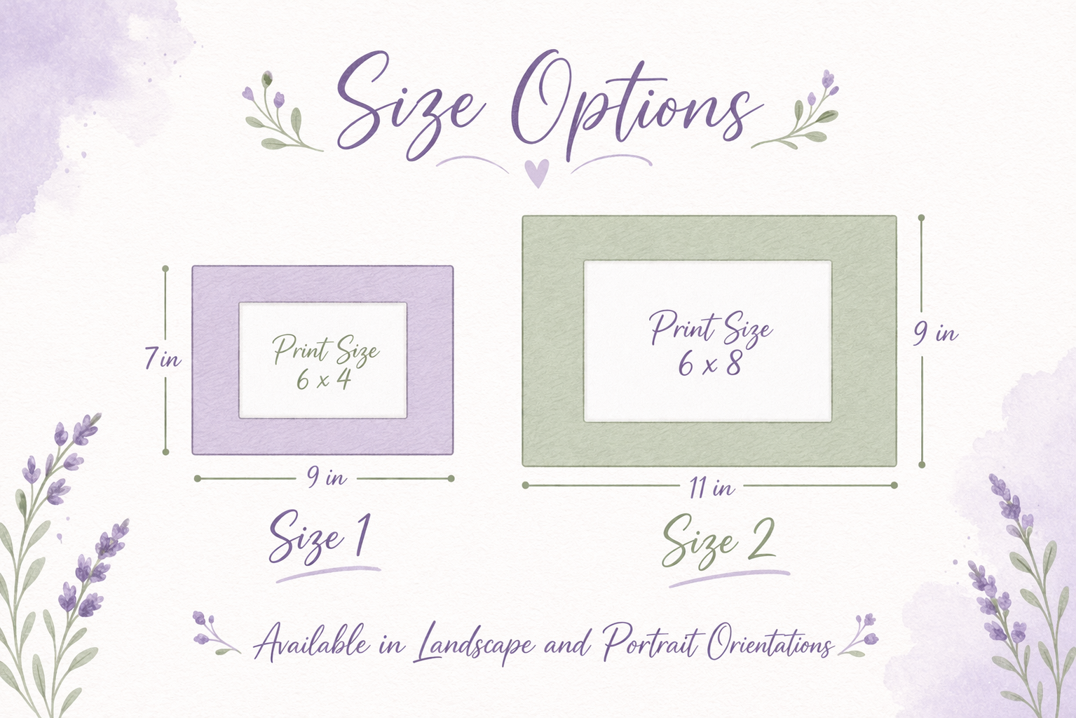 • Two size options: Small (7 x 9″ | 4 x 6″ photo) & Large (9 x 11″ | 6 x 8″ photo)