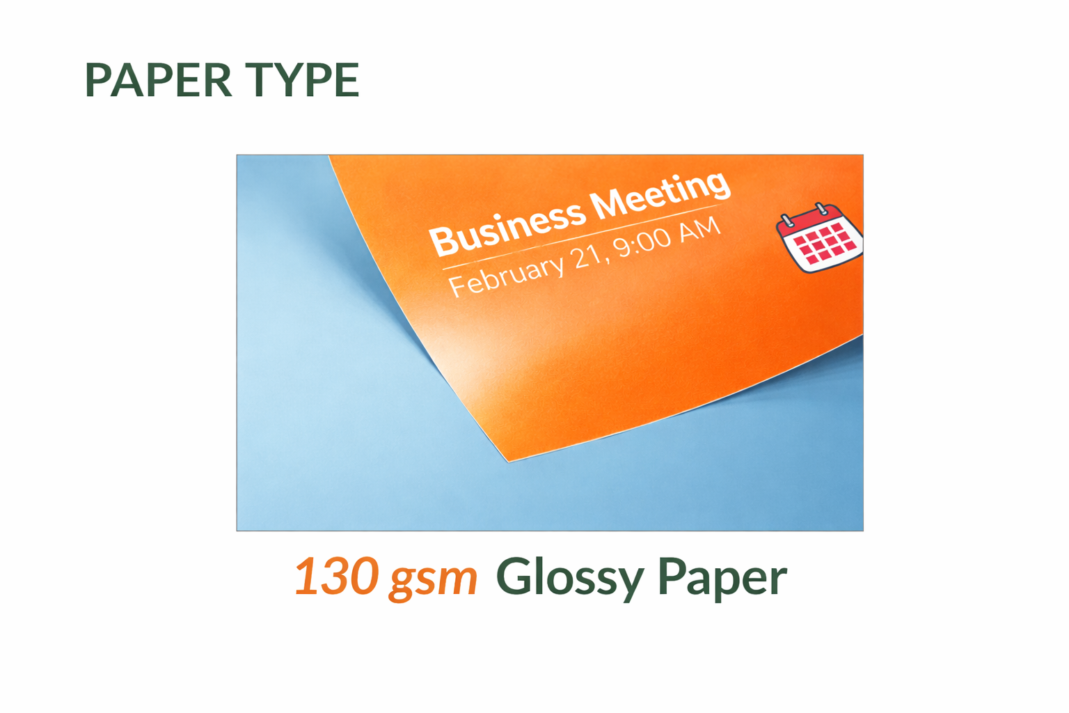 - 130 GSM Glossy Paper – A standard choice that provides a smooth surface and vibrant color output for eye-catching results