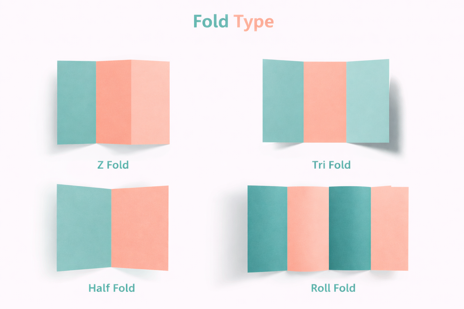 | Fold Type | Half Fold Bi-Fold (2 Panels) Tri Fold 3 Panels Z-Fold 3 Panels Roll Fold 3 Panels |