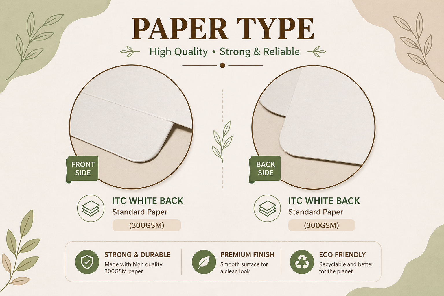 - Materials: Standard / Premium / Kraft