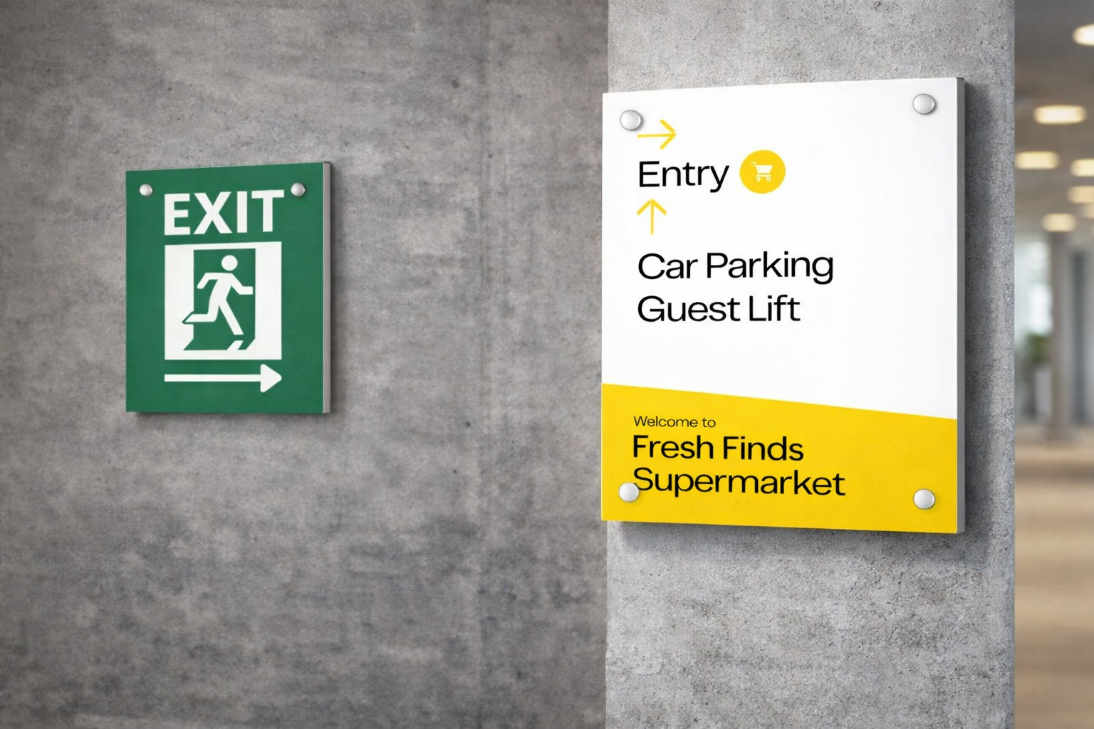 Mounted using metal studs, they create a subtle floating effect that enhances visual appeal. Crafted with 3mm or 5mm sunboard and finished using wide-format vinyl printing, each sign delivers durability along with sharp, high-quality graphics.